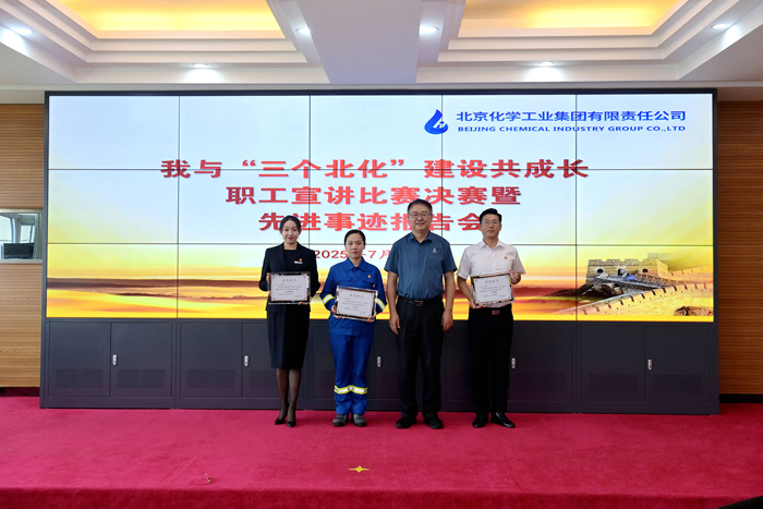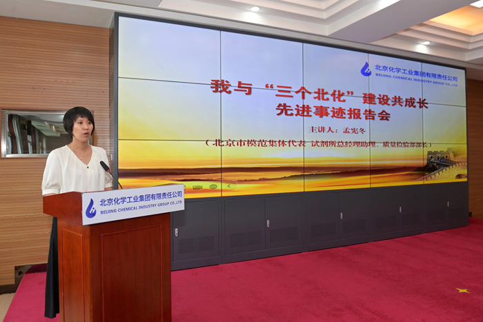 在先進事跡報告環(huán)節(jié),市勞動模范,華騰新材總工程師崔正攜《以使命為船,以熱愛為帆,在時代洪流中奮勇爭先》;市模范集體代表,試劑所總經(jīng)理助理、質量檢驗部部長孟憲冬以《傳承工匠精神,助力“三個北化”,試劑所質量檢驗部的奮進之路》為題,圍繞個人成長、科研開發(fā)、團隊建設,自信講述與北京化工共同成長的點點滴滴。