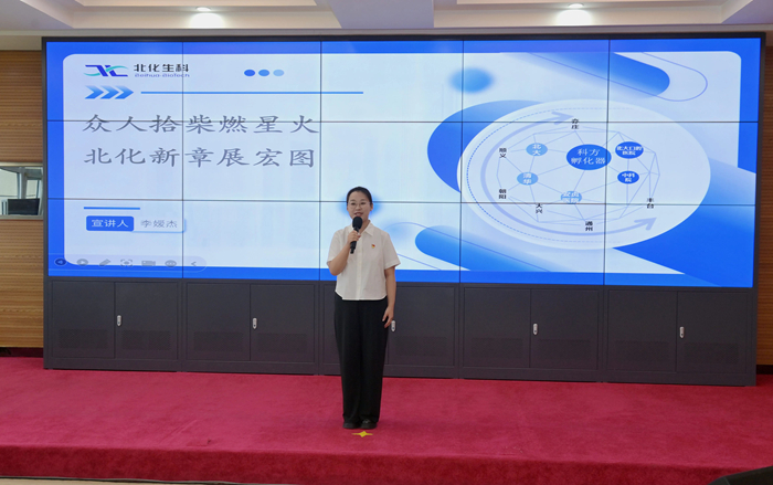 在首先舉行的“職工宣講比賽決賽暨先進事跡報告會”上,從預賽29名參賽者中脫穎而出的選手們,依次走上講臺,深情宣講扎根“三個北化”建設一線的鮮活故事。來自北化生科、華騰檢測、化研院、北搪公司的4名宣講員進行了精彩的宣講展示,他們生動講述了北化人面向生物醫(yī)藥新“藍海”的無畏拓進,在市場營銷、科研開發(fā)、信訪維穩(wěn)等重點工作中攻堅克難的感人故事。來自技師學院、北普公司、北化房地產(chǎn)公司的3名宣講員進入決賽,他們或講述職業(yè)教育的酸甜苦辣、或反映現(xiàn)代產(chǎn)線的紛繁復雜、或展示酒店行業(yè)的微笑服務,娓娓道來的深情告白,無不體現(xiàn)出北化人心系首都發(fā)展安全、情系百姓健康幸福的錚錚誓言。